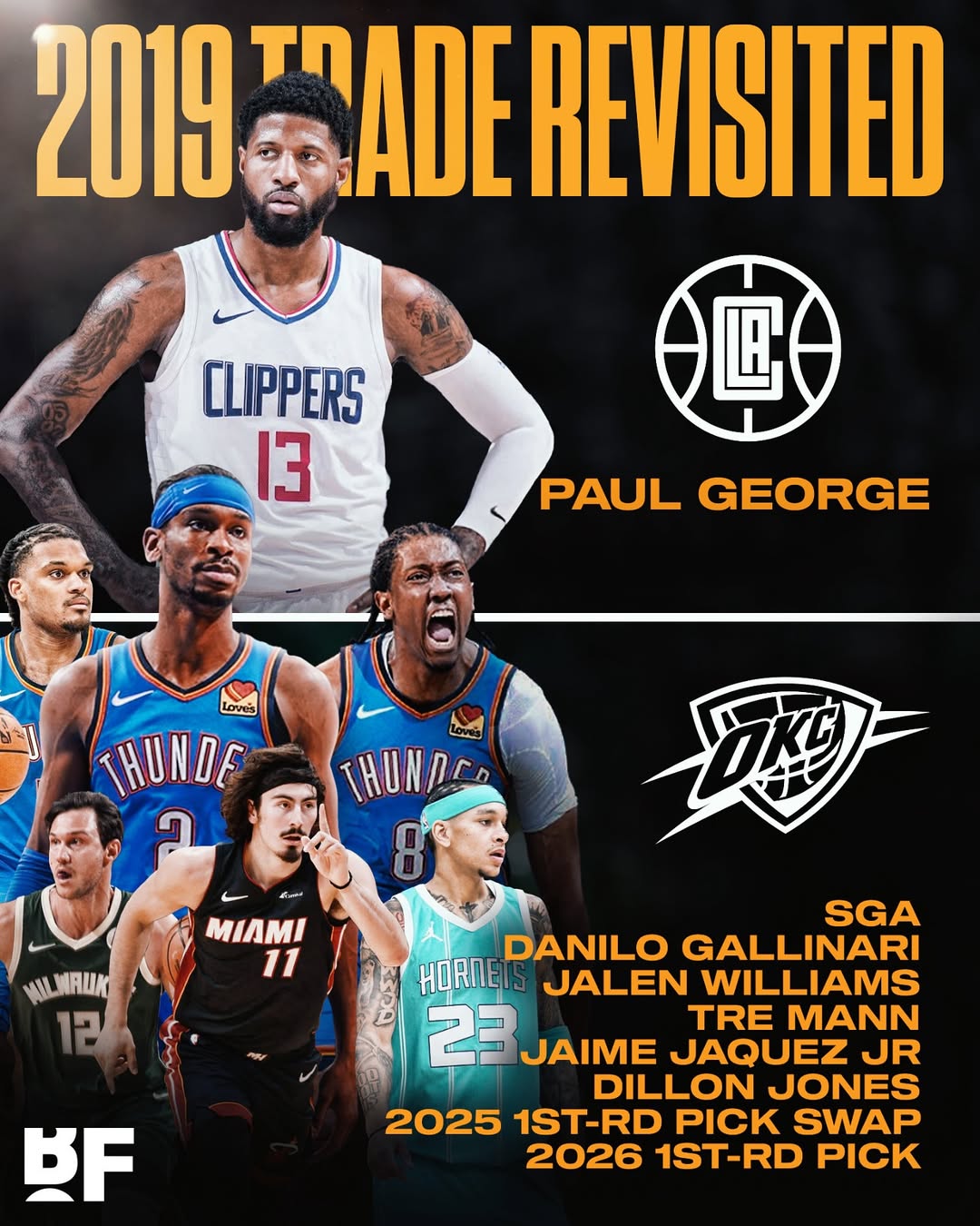 “乔治那年可是MVP候选前三啊,攻防一体,就像乔丹和皮蓬的结合体。亚历山大当时是一名不错的年轻球员,但你绝对想不到他能有如今的成就。这对亚历山大来说也是最好的事情,因为如果他留在快船,他可能没有那么多球权,他到了属于自己的球队才能有这样的成长。